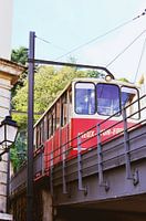 Iconische en historische kabelbaan van Vieux Lyon, bergafwaarts vanaf Fourviere, in een prachtige vintage scène in het centrum van Lyon, Frankrijk, een van de meest verbazingwekkende steden van Europa en ook een Unesco World Heritage site met meer dan 2000 jaar geschiedenis.