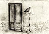 In een oude en verlaten boerderij in Italië stond deze oude lamp naast de vervallen deur. De afgebladderde muren en de hangende spinnenwebben waren een mooi decor voor deze vintage lamp.