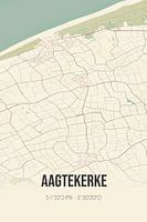 Retro plattegrond van Aagtekerke, gelegen in de gemeente Veere, provincie Zeeland. Op de landkaart zijn de openbare wegen, waterlopen (meren, beken en sloten) en bossen in en rondom Aagtekerke weergeven. Verder is de kaart voorzien van de coördinaten van Aagtekerke.