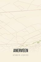 Retro plattegrond van Anerveen, gelegen in de gemeente Hardenberg, provincie Overijssel. Op de landkaart zijn de openbare wegen, waterlopen (meren, beken en sloten) en bossen in en rondom Anerveen weergeven. Verder is de kaart voorzien van de coördinaten van Anerveen.