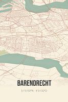 Retro plattegrond van Barendrecht, gelegen in de gemeente Barendrecht, provincie Zuid-Holland. Op de landkaart zijn de openbare wegen, waterlopen (meren, beken en sloten) en bossen in en rondom Barendrecht weergeven. Verder is de kaart voorzien van de coördinaten van Barendrecht.