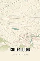 Retro plattegrond van Collendoorn, gelegen in de gemeente Hardenberg, provincie Overijssel. Op de landkaart zijn de openbare wegen, waterlopen (meren, beken en sloten) en bossen in en rondom Collendoorn weergeven. Verder is de kaart voorzien van de coördinaten van Collendoorn.