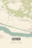 Retro plattegrond van Cothen, gelegen in de gemeente Wijk bij Duurstede, provincie Utrecht. Op de landkaart zijn de openbare wegen, waterlopen (meren, beken en sloten) en bossen in en rondom Cothen weergeven. Verder is de kaart voorzien van de coördinaten van Cothen.