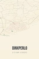 Retro plattegrond van Dinxperlo, gelegen in de Achterhoek, in de gemeente Aalten, provincie Gelderland. Op de landkaart zijn de openbare wegen, waterlopen (meren, beken en sloten) en bossen in en rondom Dinxperlo weergeven. Verder is de kaart voorzien van de coördinaten van Dinxperlo.