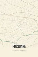 Retro plattegrond van Folsgare, gelegen in de gemeente Sudwest-Fryslan, provincie Fryslan. Op de landkaart zijn de openbare wegen, waterlopen (meren, beken en sloten) en bossen in en rondom Folsgare weergeven. Verder is de kaart voorzien van de coördinaten van Folsgare.