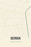 Retro plattegrond van Geerdijk, gelegen in Twente, in de gemeente Twenterand, provincie Overijssel. Op de landkaart zijn de openbare wegen, waterlopen (meren, beken en sloten) en bossen in en rondom Geerdijk weergeven. Verder is de kaart voorzien van de coördinaten van Geerdijk.