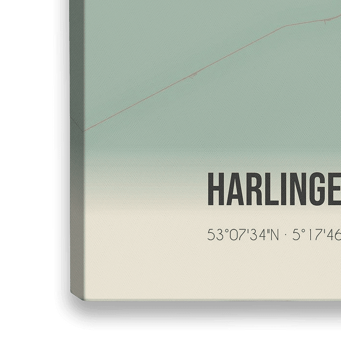 Retro plattegrond van Harlingen, gelegen in de gemeente Harlingen, provincie Fryslan. Op de landkaart zijn de openbare wegen, waterlopen (meren, beken en sloten) en bossen in en rondom Harlingen weergeven. Verder is de kaart voorzien van de coördinaten van Harlingen.