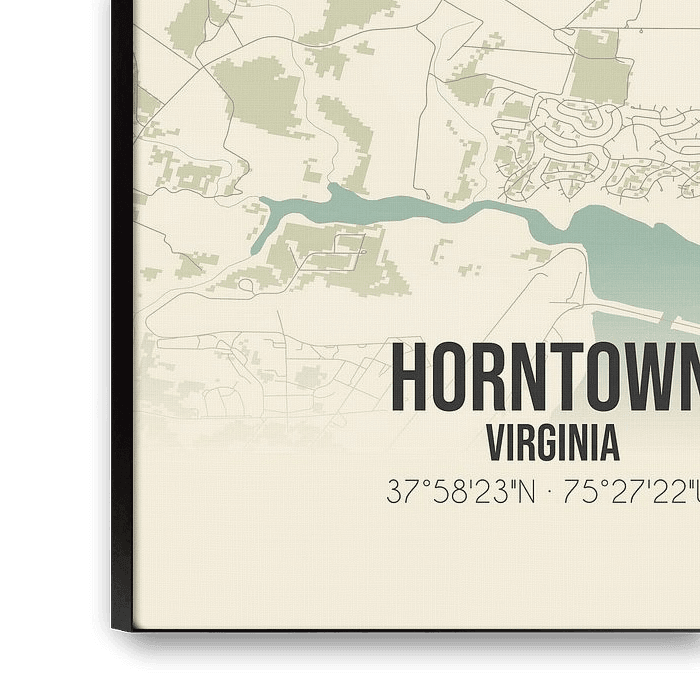 Nostalgie en avontuur gaan hand in hand met deze vintage landkaart van Horntown, Virginia. De kaart neemt u mee op een reis door de tijd en laat u kennismaken met de veelzijdigheid van deze charmante plaats, gelegen in de Verenigde Staten.
