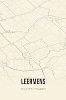 Retro plattegrond van Leermens, gelegen in de gemeente Loppersum, provincie Groningen. Op de landkaart zijn de openbare wegen, waterlopen (meren, beken en sloten) en bossen in en rondom Leermens weergeven. Verder is de kaart voorzien van de coördinaten van Leermens.
