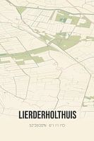 Retro plattegrond van Lierderholthuis, gelegen in de gemeente Raalte, provincie Overijssel. Op de landkaart zijn de openbare wegen, waterlopen (meren, beken en sloten) en bossen in en rondom Lierderholthuis weergeven. Verder is de kaart voorzien van de coördinaten van Lierderholthuis.