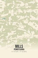 Vintage landkaart van Mills (Pennsylvania), USA. van Stad & Wand