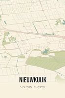 Retro plattegrond van Nieuwkuijk, gelegen in de gemeente Heusden, provincie Noord-Brabant. Op de landkaart zijn de openbare wegen, waterlopen (meren, beken en sloten) en bossen in en rondom Nieuwkuijk weergeven. Verder is de kaart voorzien van de coördinaten van Nieuwkuijk.