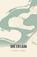 Retro plattegrond van Ohé en Laak, gelegen in de gemeente Maasgouw, provincie Limburg. Op de landkaart zijn de openbare wegen, waterlopen (meren, beken en sloten) en bossen in en rondom Ohé en Laak weergeven. Verder is de kaart voorzien van de coördinaten van Ohé en Laak.