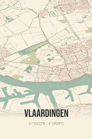 Retro plattegrond van Vlaardingen, gelegen in de gemeente Vlaardingen, provincie Zuid-Holland. Op de landkaart zijn de openbare wegen, waterlopen (meren, beken en sloten) en bossen in en rondom Vlaardingen weergeven. Verder is de kaart voorzien van de coördinaten van Vlaardingen.