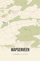 Retro plattegrond van Wapserveen, gelegen in de gemeente Westerveld, provincie Drenthe. Op de landkaart zijn de openbare wegen, waterlopen (meren, beken en sloten) en bossen in en rondom Wapserveen weergeven. Verder is de kaart voorzien van de coördinaten van Wapserveen.