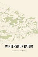 Retro plattegrond van Winterswijk Ratum, gelegen in de Achterhoek, in de gemeente Winterswijk, provincie Gelderland. Op de landkaart zijn de openbare wegen, waterlopen (meren, beken en sloten) en bossen in en rondom Winterswijk Ratum weergeven. Verder is de kaart voorzien van de coördinaten van Winterswijk Ratum.