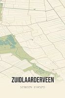 Retro plattegrond van Zuidlaarderveen, gelegen in de gemeente Tynaarlo, provincie Drenthe. Op de landkaart zijn de openbare wegen, waterlopen (meren, beken en sloten) en bossen in en rondom Zuidlaarderveen weergeven. Verder is de kaart voorzien van de coördinaten van Zuidlaarderveen.