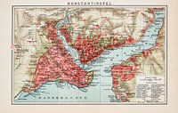 Op deze antieke kaart uit ca. 1900 staat een plattegrond van de stad Istanbul, rond het jaar 1900 stond deze stad nog bekend als Konstantinopel (ook wel Constantinopel). Deze stadskaart is in kleur.