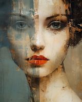 Vintage portret van een jonge vrouw verweerd. Kies zelf het formaat en materiaal voor dit werk en maak het op die manier helemaal passend voor jouw interieur.