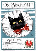 Deze oude reclameposter voor een toneelstuk toont het hoofd van een zwarte kat. De namen van de toneelstukken zijn ook te vinden.