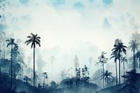 Vintage print in blauw van een tropisch landschap. Een echte blikvanger voor aan je muur. Ook heel erg gaaf als behang.