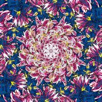 Een spiraalvorm in tinten tussen blauw en paars, gebaseerd op een foto van de bloemen van een magnolia in het voorjaar.