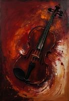 De viool is weergegeven in schilderachtig clair-obscur, de contouren worden gedefinieerd door dramatische contrasten van licht en schaduw. Expressieve spateffecten kabbelen naar buiten en roepen de beweging van de strijkstok over de snaren op, de golf van muziek die in de stilte leeft. Het stuk vangt zowel kwetsbaarheid als kracht, de poëzie van een instrument dat lang verbonden is geweest met passie en artisticiteit. Een soulvol werk dat verzamelaars aanspreekt die waarde hechten aan elegantie en emotie.