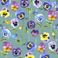 Viooltjes in verschillende kleuren in het voorjaar gemaakt in aquarel als patroon.