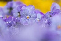 De viooltjes zijn bestrooid met mooie dauwdruppels.