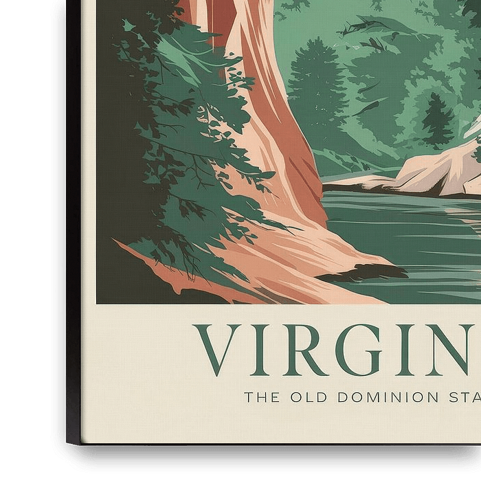 Koop dit landschapskunstwerk Virginia Vintage Reisposter van Poster Art Shop op canvas, aluminium dibond, (ingelijste) fotoprint, behang en ArtFrame, op maat geprint in Fine-Art kwaliteit.