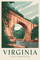 Hier ontvouwt zich een harmonieuze symbiose van natuur en architectuur: De majestueuze boogbrug, omringd door weelderig groen en reflecterend water, nodigt je uit om te ontspannen. Deze stijlvolle afbeelding van Virginia voegt een vleugje rust en avontuur toe aan elke kamer en is bijzonder geschikt voor de woonkamer. Ideaal voor natuurliefhebbers en ontdekkingsreizigers!