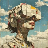Details: portret, vrouw, realisme, collage, modern, kunst, blauw, geel, bruin, wit