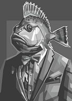 Fish Man Grijsschaal Ontwerp wpap popart illustratie kunstwerk, print digitale metalen poster