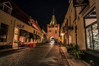 de Vischpoort Elburg in de nacht. tevens is er nog een gedeelte zichtbaar van de sfeervolle straten van Elburg