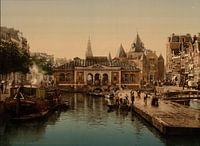 Foto van Vismarkt en Waag, gefotografeerd tussen 1890 en 1905.