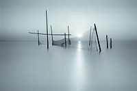Zonsondergang aan de Noordzee in Nederland. Lange sluitertijd gebruikt geeft dit minimalisme. Fine art Photography.