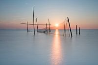 Zonsondergang aan de Noordzee in Nederland. Lange sluitertijd gebruikt geeft dit minimalisme. Fine art Photography.