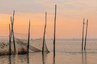Visnetten vind je niet zo veel meer op het Wad. Er zijn nog een paar plekje waar met een fuik gevist wordt. Je moet het net weten, maar dan is het ook een prachtig onderwerp. Zeker als de avond zo mooi kleurt als deze avond.