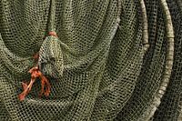 Een sfeervolle close-up van verweerde visnetten die de charme van het maritieme leven perfect vastlegt. De verweven draden, met hun natuurlijke vezels en subtiele verkleuringen, vertellen verhalen van zout water, wind en tijd.