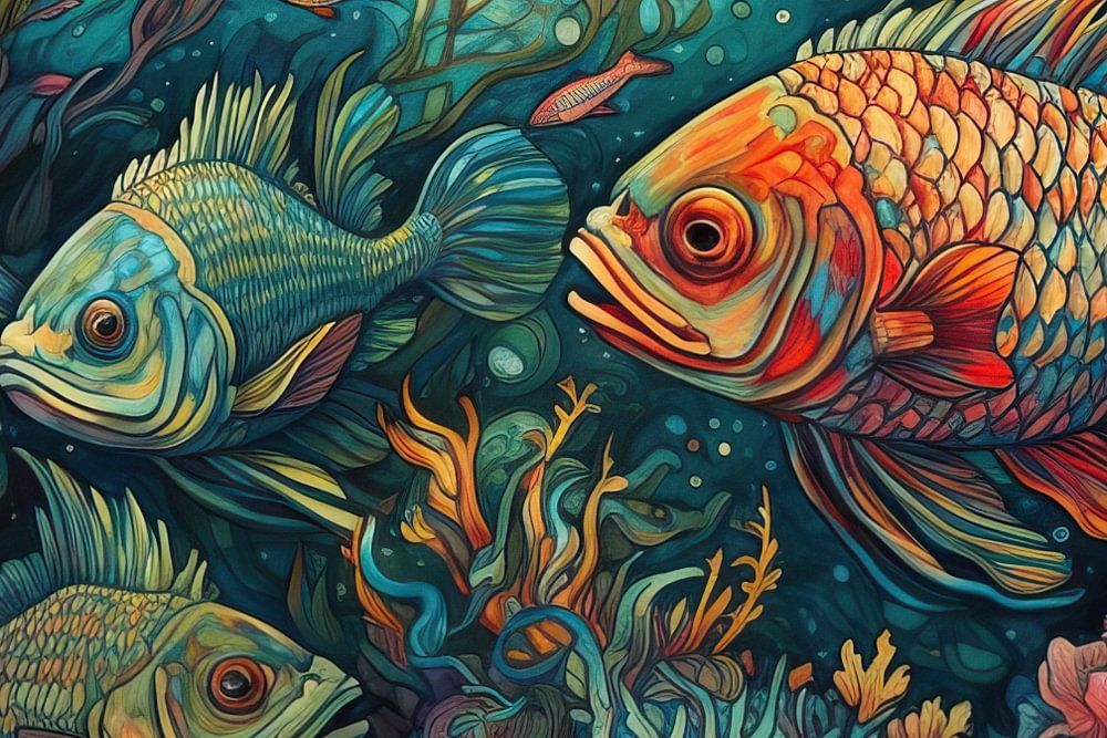 Vissen zijn prachtig om te schilderen vanwege hun levendige kleuren en unieke patronen, die een visueel spektakel vormen op het doek.
