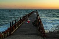 Visser op de steiger bij het KNRM station Westkapelle,Zeeland,Nederland.De dag liep ten einde,langzaam ging de zon onder en verschenen er mooie kleuren in de lucht wat voor een mooie sfeer zorgde.