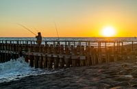 Visser op de steiger bij het KNRM station Westkapelle,Zeeland,Nederland.De dag liep ten einde,langzaam ging de zon onder en verschenen er mooie kleuren in de lucht wat voor een mooie sfeer zorgde.