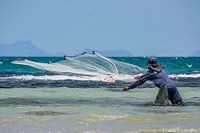 Op een rustig strand van Koh Samui zat ik lange tijd te kijken naar het ritme van de zee en de bewegingen van een visser die zijn net uitwierp.