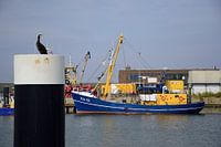 Op het dek van de veerboot die ons naar Terschelling in Nederland zal brengen. Wachtend tot we zouden vertrekken genoten we van de vele vissersboten om ons heen, zoals vissersboot HA-43 hier in de haven van Harlingen.