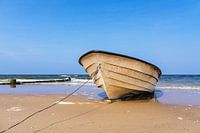 Vissersboot en krib op het strand van Bansin op het eiland Usedom.