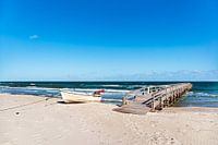 Vissersboot en steiger aan de Oostzeekust bij Zingst op Fischland-Darß.
