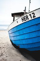 Blauwe vissersboot op het strand van Heringsdorf aan de Oostzeekust.
