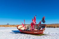 Vissersboot in de haven van Althagen am Bodden op de Fischland-Darß in de winter.