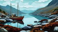 een kleine vissersboot voor anker in een fjord, Noorwegen, fjordlandschap