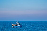 Vissersboot met meeuwen op de Oostzee voor Warnemünde.